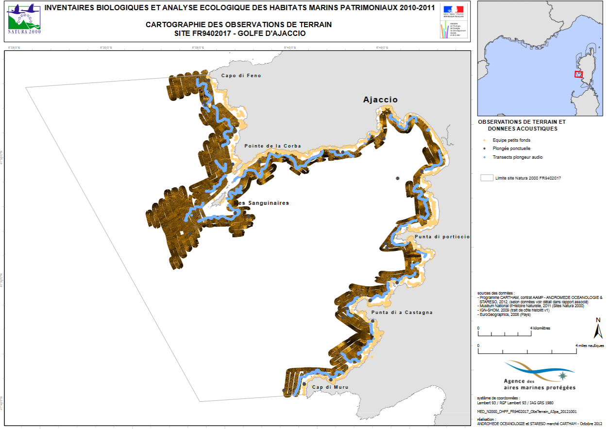 - Citation obligatoire dans la bibliographie de la référence suivante : Andromède Océanologie et STARESO, 2012. Inventaires biologiques et analyse écologique des habitats marins patrimoniaux du site Natura 2000 « Golfe d’Ajaccio » FR 9402017. Contrat Andromède Océanologie et STARESO / AGENCE DES AIRES MARINES PROTEGEES. 426p.